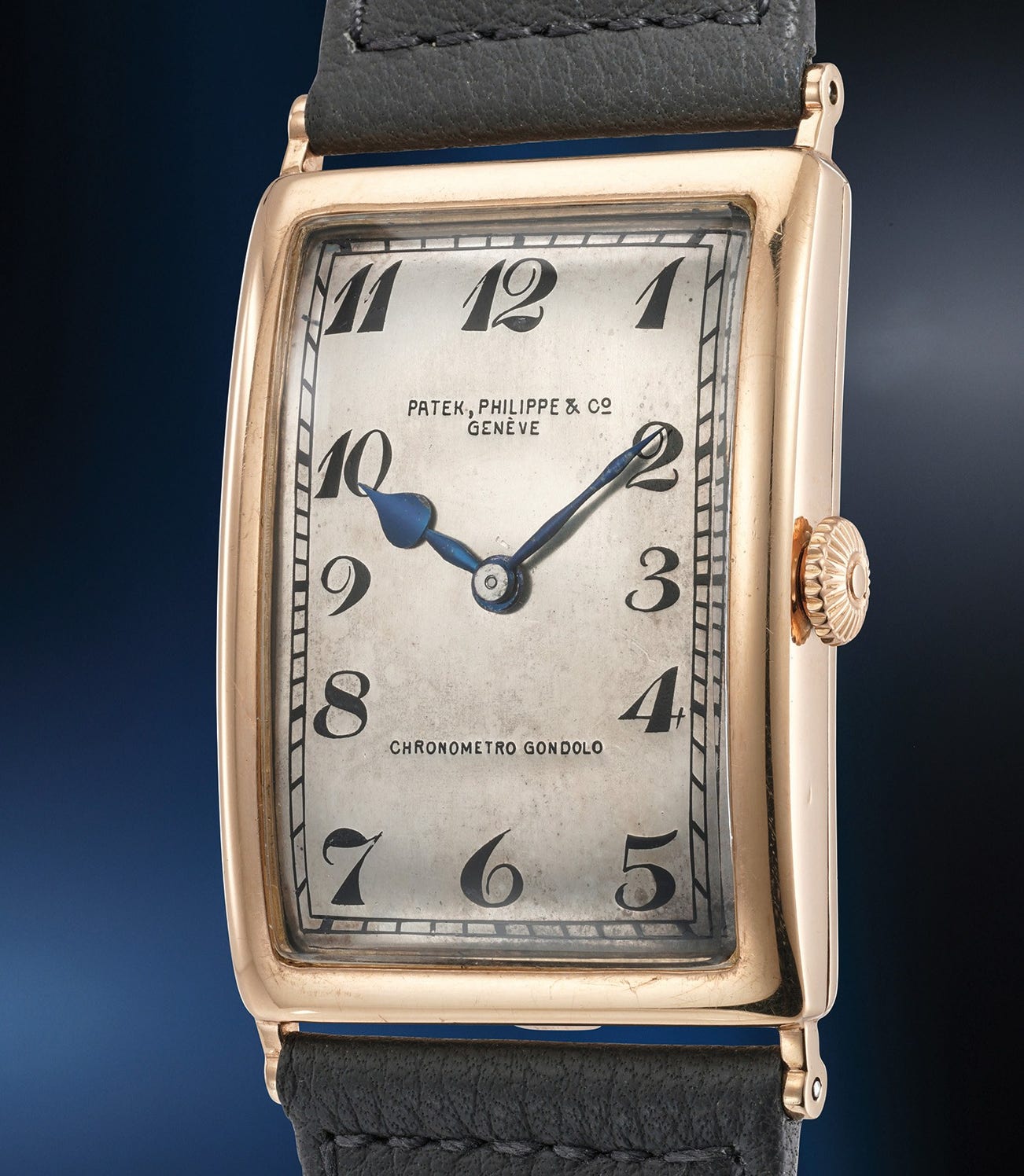In 2016, Phillips had the privilege of auctioning a similarly exceptional oversized pink gold Gondolo that, at the time we believed to be a possibly unique piece. That watch had a movement made in 1912 and cased in 1928. To our upmost surprise and enchantment, the present watch's case and movement numbers are just a few digits apart from the Gondolo that we auctioned in 2016. Thanks to Patek Philippe Archives Department we were able to unearth a common origin story for both watches. Both have movements that were made between 1912 and 1913 and cased between 1928 and 1929.