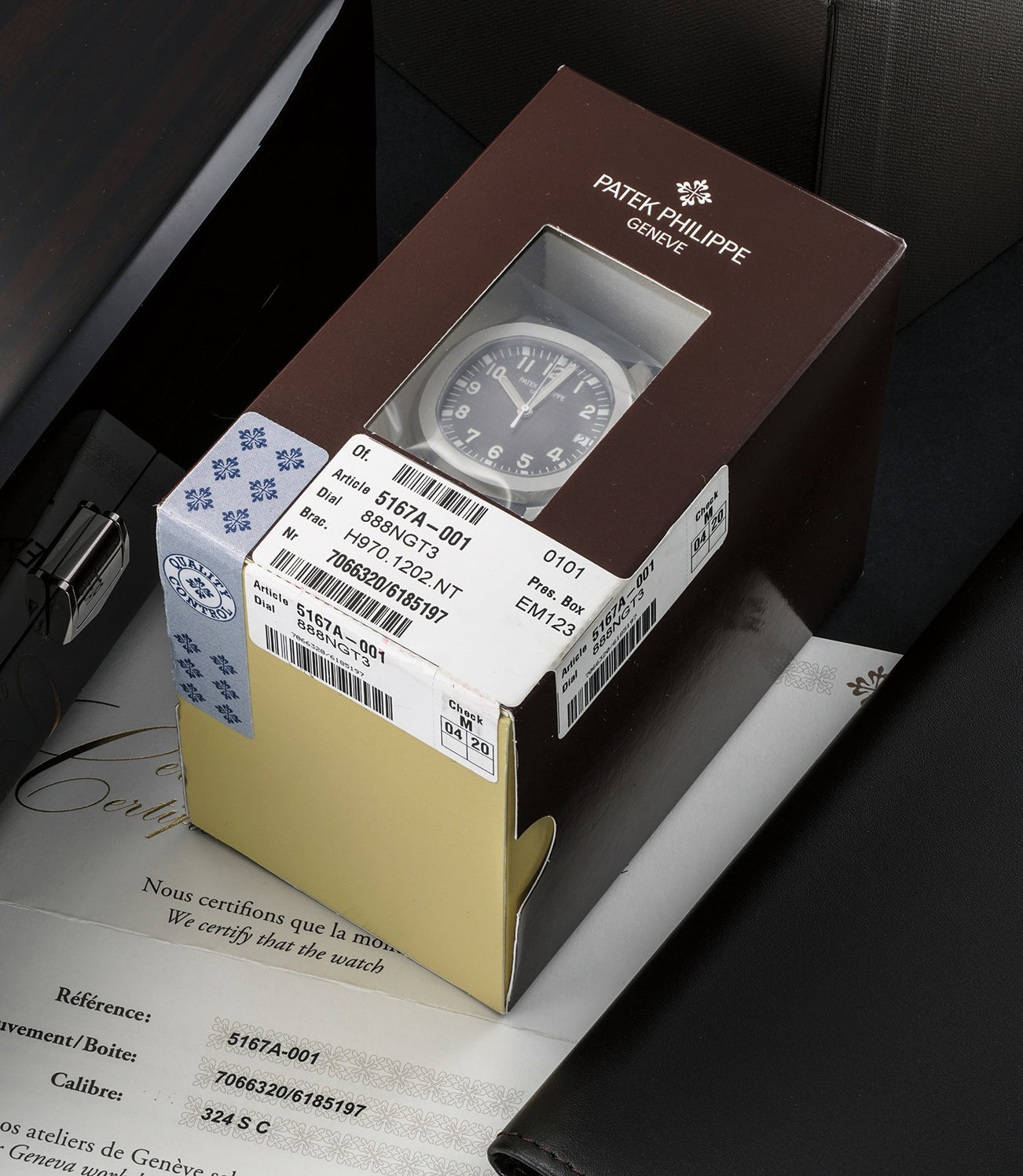百達翡麗,精細罕有,精鋼腕錶,備中心秒針、日期顯示。附錶盒、原裝證書—全新原廠雙封