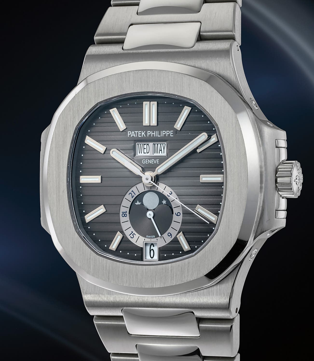 The present reference 5726/1A-001 is the second variation of the Annual Calendar Nautilus launched in 2012, which, for the first time was offered with the iconic Nautilus satin and mirror finished stainless steel bracelet.