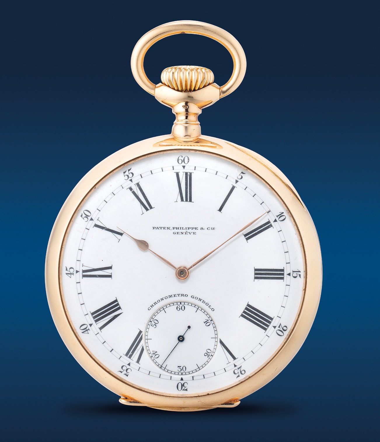 In 1902, Patek Philippe created this series of pocket watches with the inscription “Chronometro Gondolo” above the signature on the dial. Powered by the cal. 21”’, the movement is equipped with a specific request for gold gear trains with keyless winding, tailored for Brazil’s hot and humid conditions. Furthermore, the cuvette is engraved with the retailer’s signature.