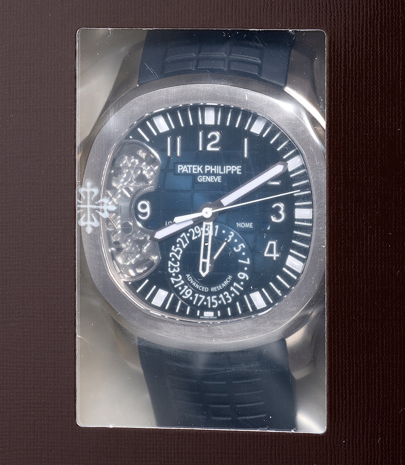 百達翡麗,「Advanced Research Aquanaut Travel Time」型號5650G-001,極度精細罕有,白金半鏤空自動兩地時區腕錶,備中心秒針、日期、日夜顯示,限量發行500枚,約2017年製。附錶盒、原裝證書、調整筆
