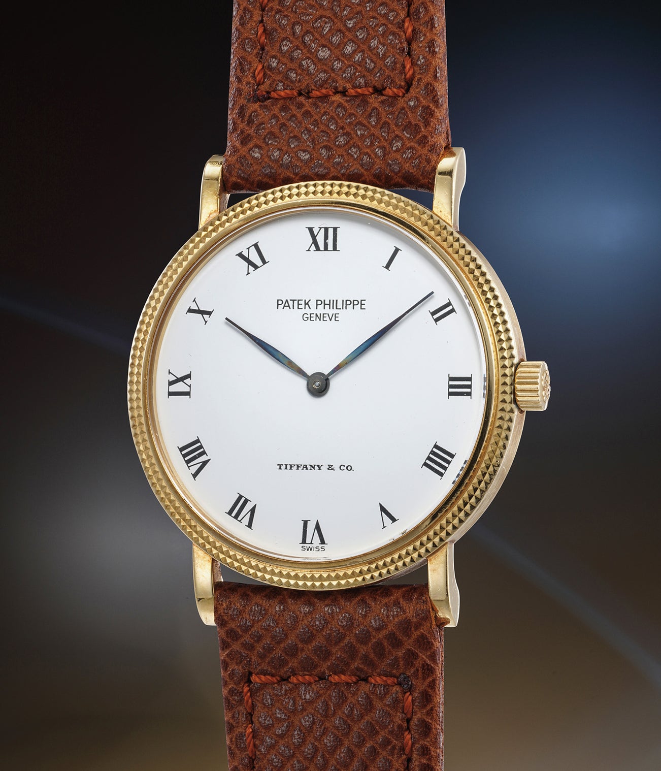 百達翡麗,優雅,黃金腕錶,備巴黎釘紋錶圈,由蒂芙尼銷售。附證書