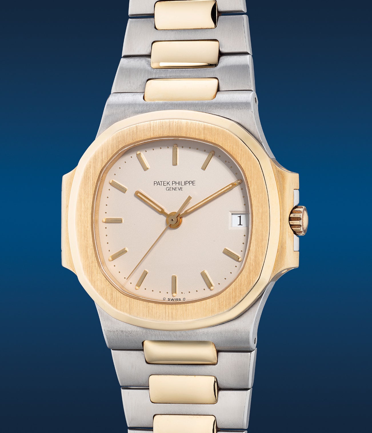 百達翡麗,「Nautilus」 型號3800/001,精鋼和黃金自動鏈帶腕錶,備白色錶盤、中心秒針、日期顯示,約1997年製。附原裝證書、錶盒