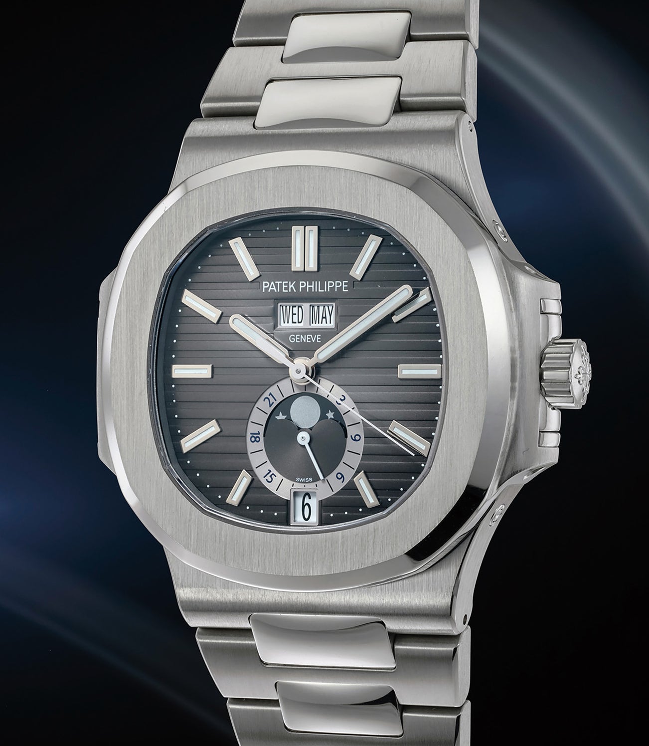The present reference 5726/1A-001 is the second variation of the Annual Calendar Nautilus launched in 2012, which, for the first time was offered with the iconic Nautilus satin and mirror finished stainless steel bracelet.