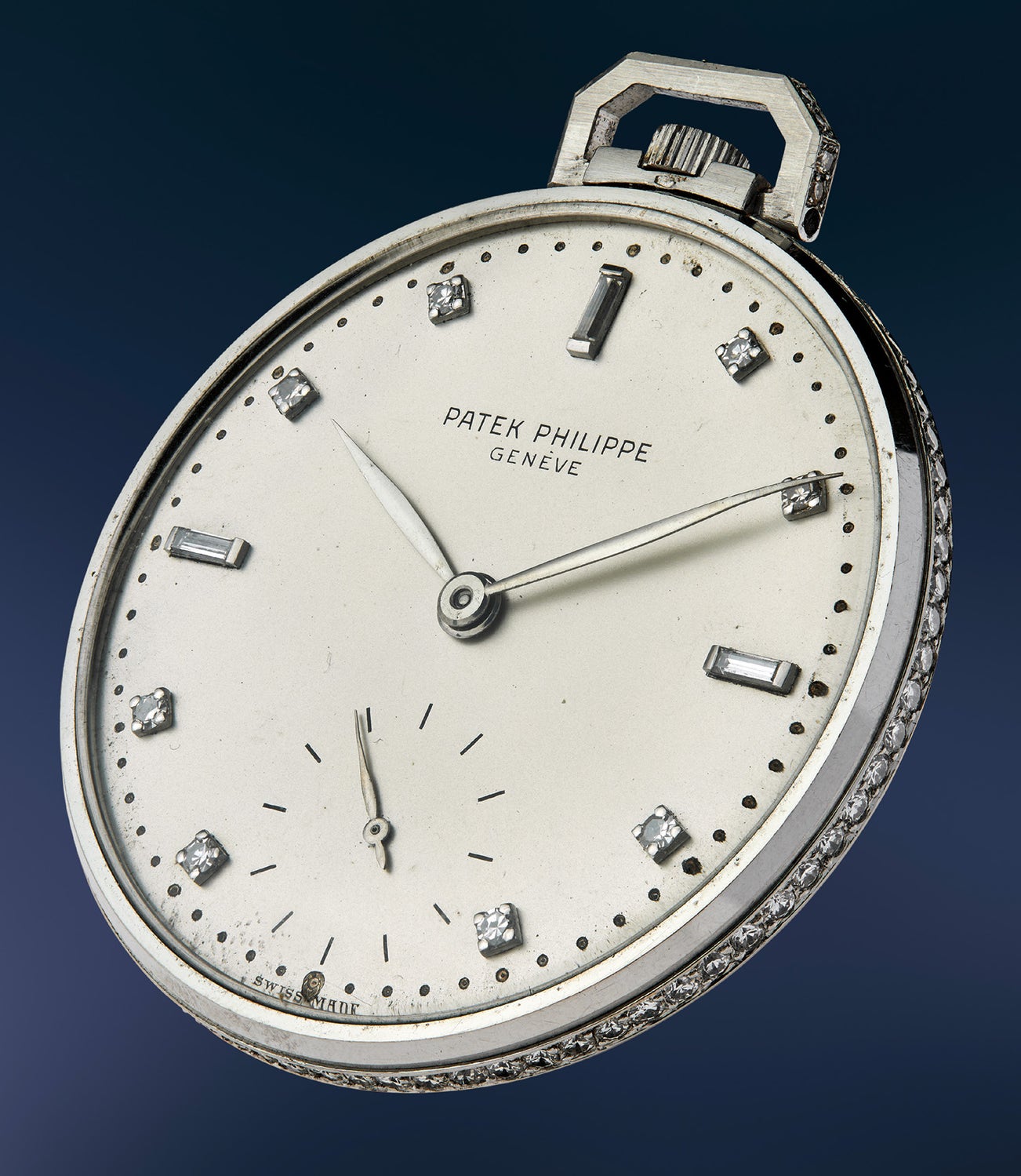 百達翡麗,極度罕有、十分優雅,鉑金鑲鑽懷錶,備鑲鑽錶盤。