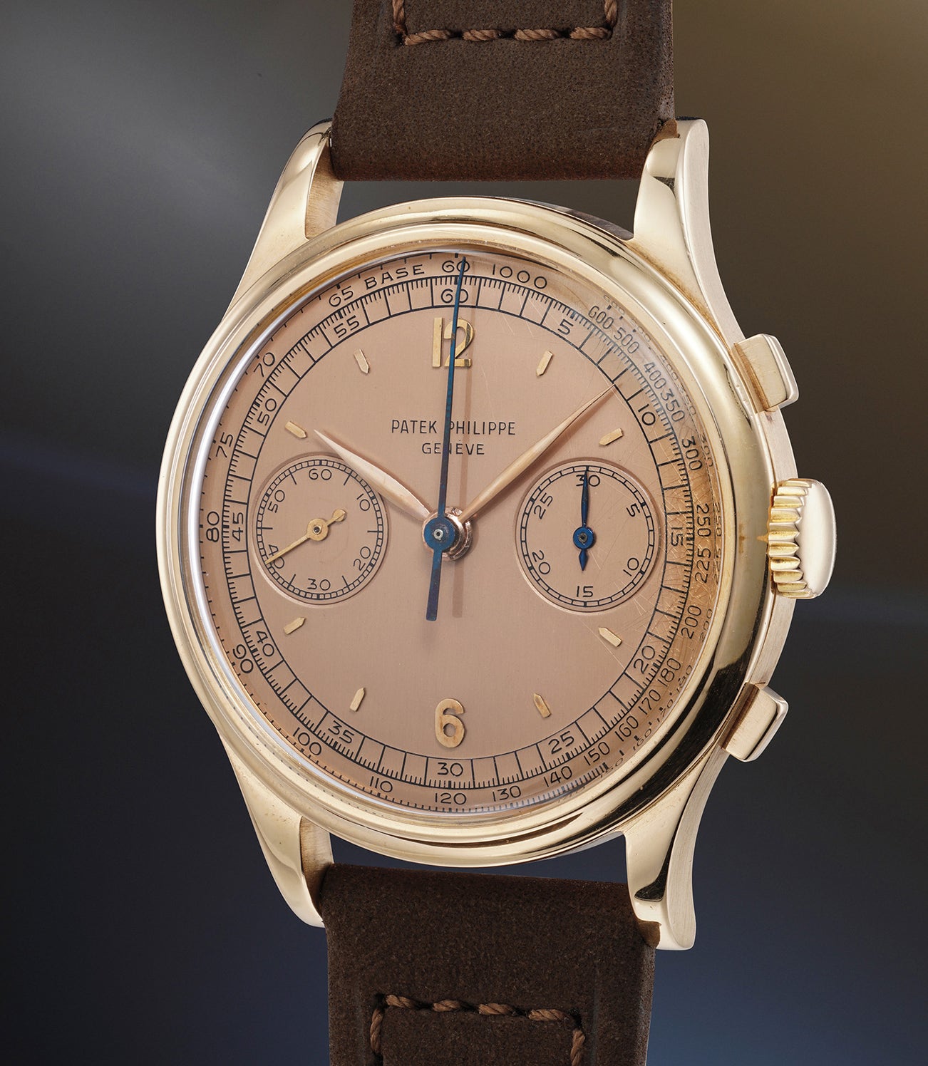 百達翡麗,極度罕有精細,玫瑰金大型計時腕錶,備粉色錶盤—同型號目前僅知的唯一版本