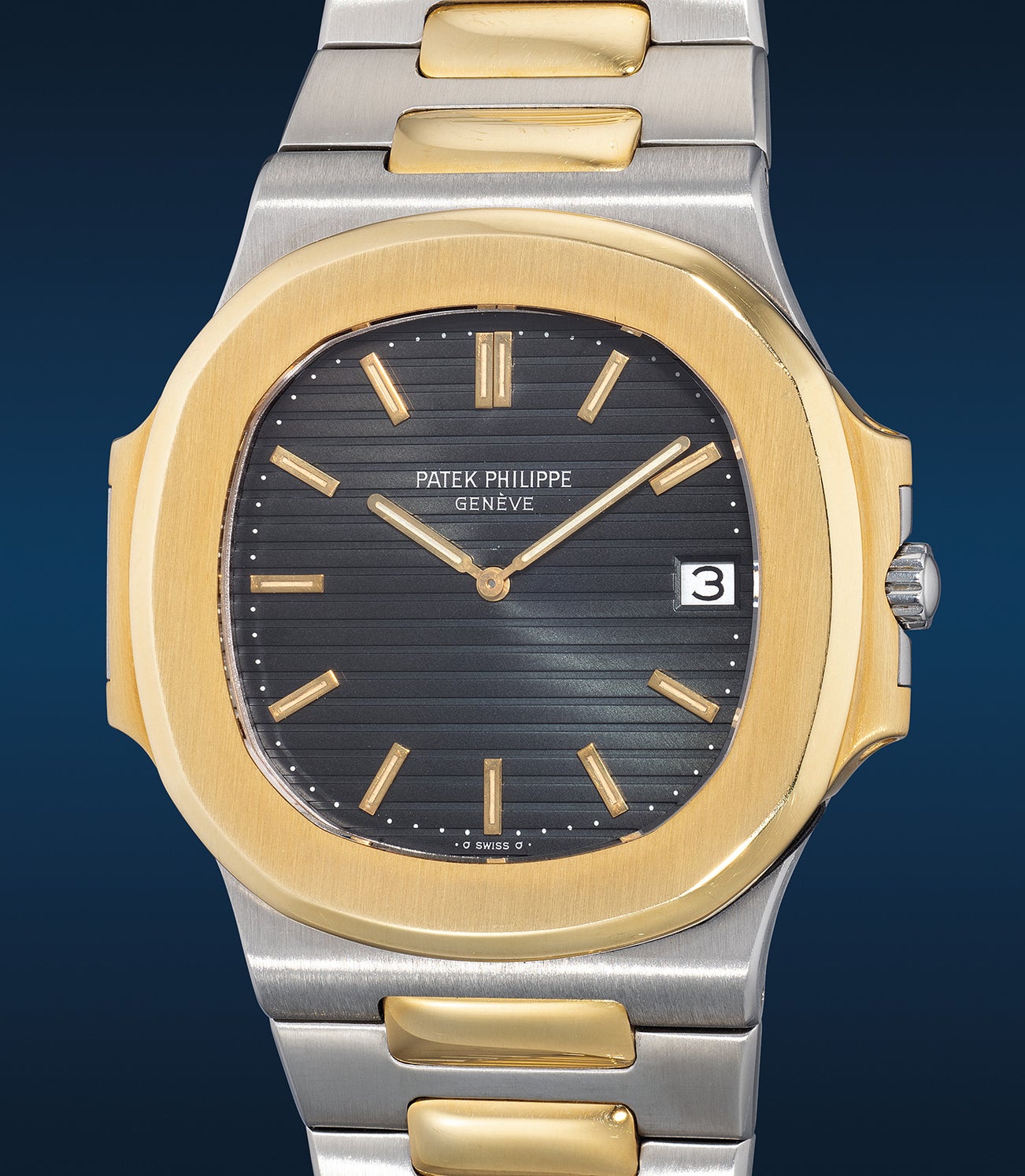 Before being succeeded by the reference 3700/011 with a tapered bracelet, the original Nautilus reference 3700/001 was in production until 1981 and featured a straight bracelet, like the present example. Early examples of the reference are fitted with broader 16mm bracelets, while later examples are updated with narrower bracelets measuring 14mm at the end.