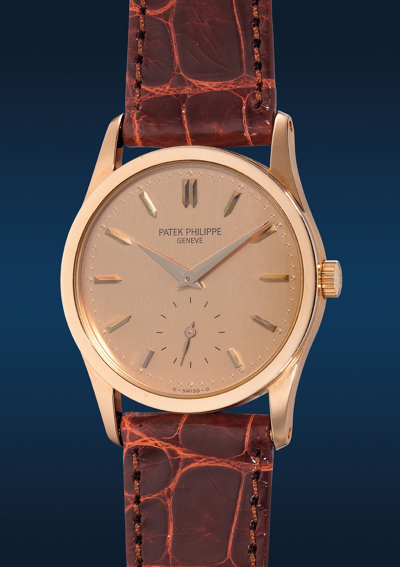 百達翡麗,「Calatrava, "Pink on Pink"」型號3796,精細,玫瑰金小三針腕錶,備玫瑰金錶盤,約1991年製。附原裝證書