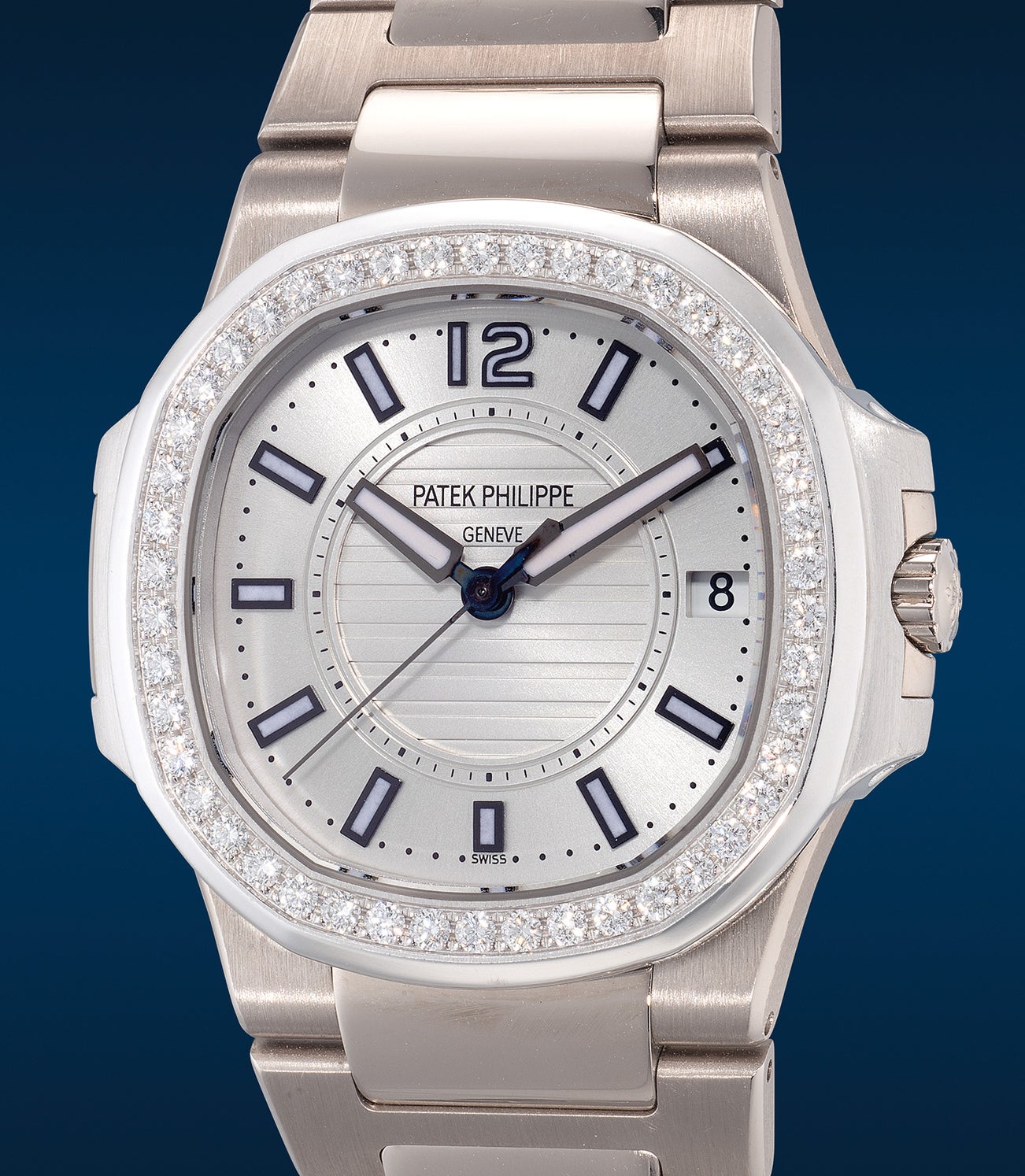 The present watch is offered in excellent condition and comes with its full accessories including the Patek Philippe Certificate of Origin and presentation box. To the best of our knowledge, the present example is fresh-to-the-market, and it is the fourth known reference 7010/1G-001 to have appeared publicly in auction. Now officially discontinued on Patek Philippe's catalog, the opportunity to acquire this dazzling sports watch should not be missed by the trendy ladies’ collectors.
