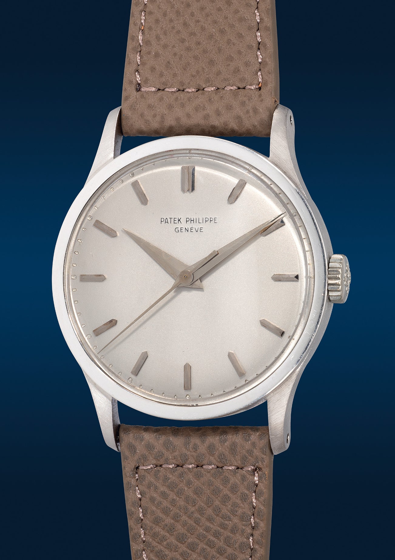 百達翡麗,「Calatravone」型號570,精細罕有,鉑金大三針腕錶,1961年製。附後補證書