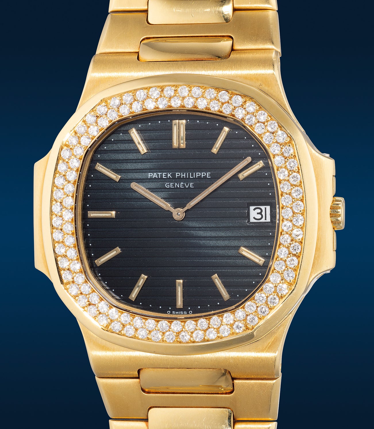 百達翡麗,「Nautilus」 型號3700/3,極度精美罕有,黃金自動鏈帶腕錶,備鑽石錶圈、日期顯示、「Gay Frères」鏈帶,1981年製。附後補證書