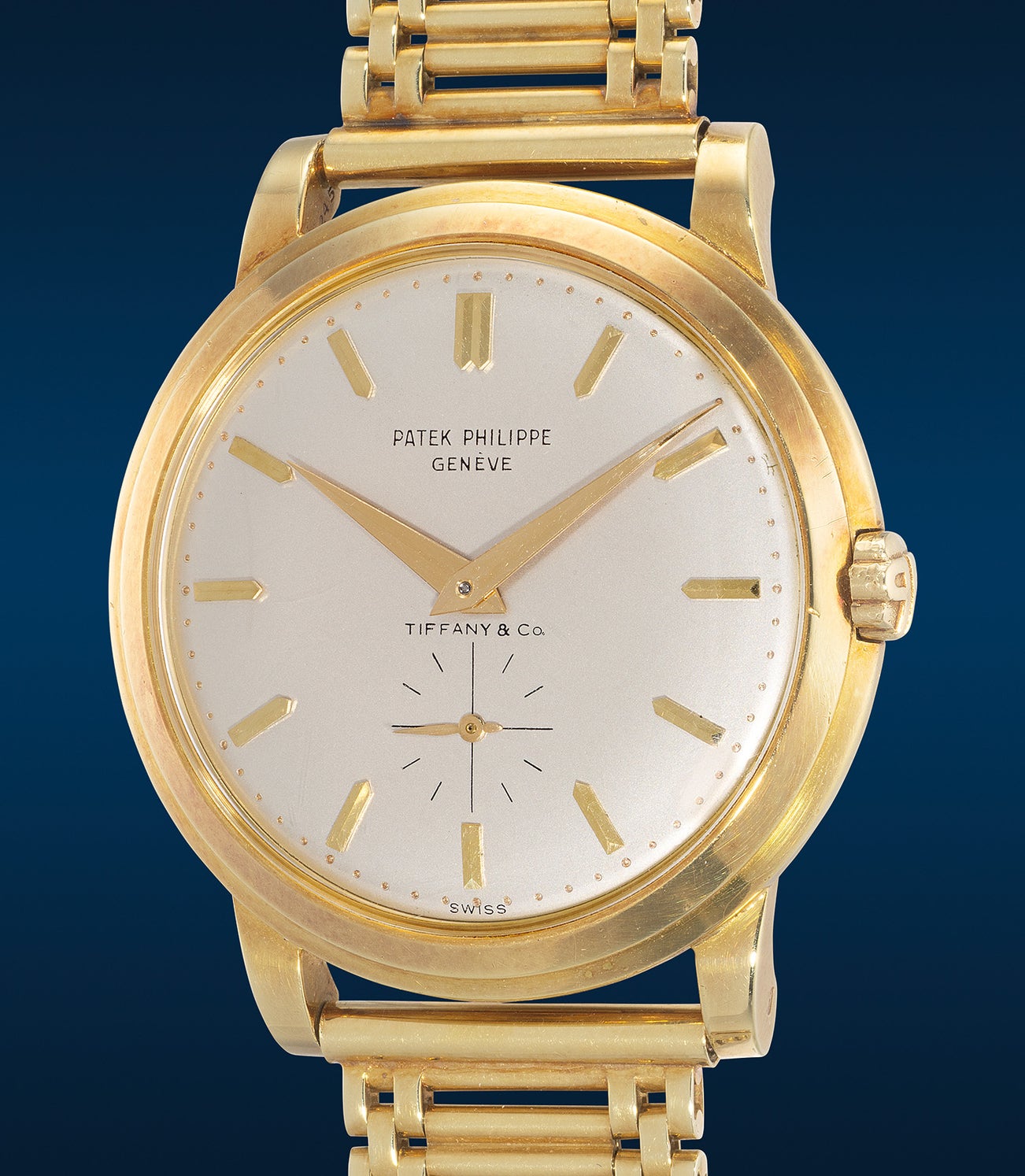 With a stronger wrist presence compared to the ref. 2526 thanks to its incredible wide stepped bezel design crafted by A. Wenger (Key number 1), they both share the same desirable double P crown design. Looking at the present timepiece, you will first notice its vanilla hued dial is blessed with a rather unique signature, the prestigious Tiffany & Co. An exceptionally well-preserved example, to our knowledge, only 60 yellow gold examples have publicly appeared in the market, and only a mere of 6 examples carries the Tiffany & Co. signature.