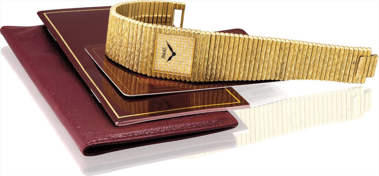 Collectors consider the 1970s as Piaget's era of superb creativity and unbounded designs. During this highly creative period, the brand designed an impressive range of cuff and bracelet watches carved in gold and adorned with exotic hard stones. Admired by most as not only jewelry but also true works of art, the firm's hard stone dial watches remain the most iconic, recognizable and desirable among collectors.