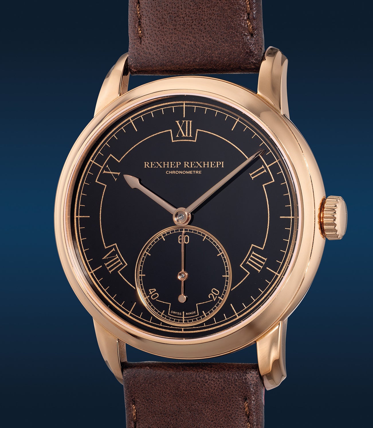 Rexhep Rexhepi,「Chronomètre Contemporain」型號 RRCC01,極度精細罕有,限量版玫瑰金小三針腕錶,備黑色大明火琺瑯錶盤、歸零功能,限量發行25枚,編號12號,約2019年製。附原裝證書、錶盒