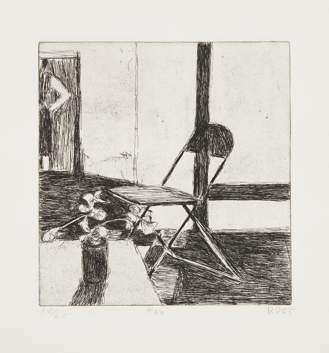《#38(椅子、盆栽、女人站著)–來自「41組蝕刻及直刻版畫」》