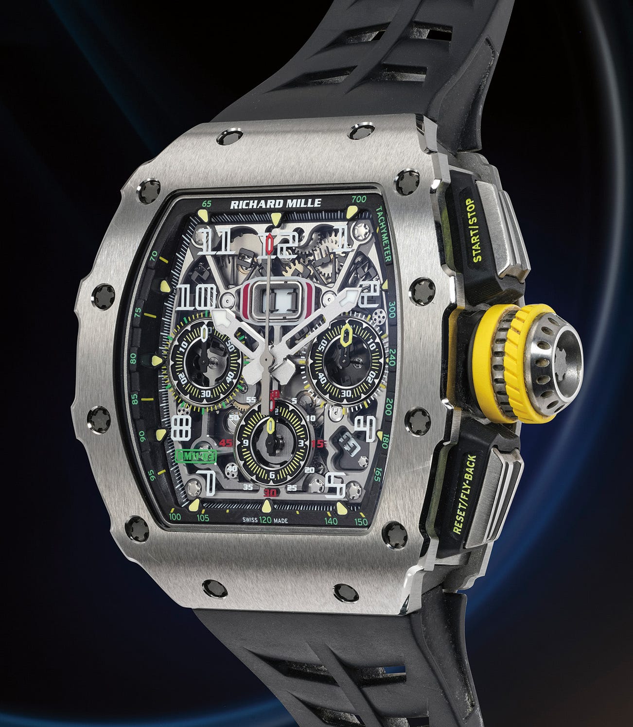 Innovative watches, such as the RM 027 Tourbillon, which was the world’s lightest mechanical watch when introduced in 2011, have helped the brand invert the concept of the luxury watch. Key models include the RM 009 Tourbillon cased in Aluminum Silicon Carbide (AlSiC), the RM 027-02 Tourbillon made for tennis star Rafael Nadal with a case made from quartz and carbon fiber and the RM 008 split seconds chronograph.
