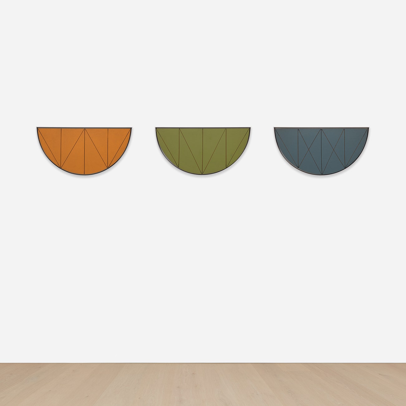 三件作品:(i)《1/2 W 系列(橘色)》;(ii)《1/2 V 系列(綠色)》;(iii)《1/2 X 系列(藍色)》