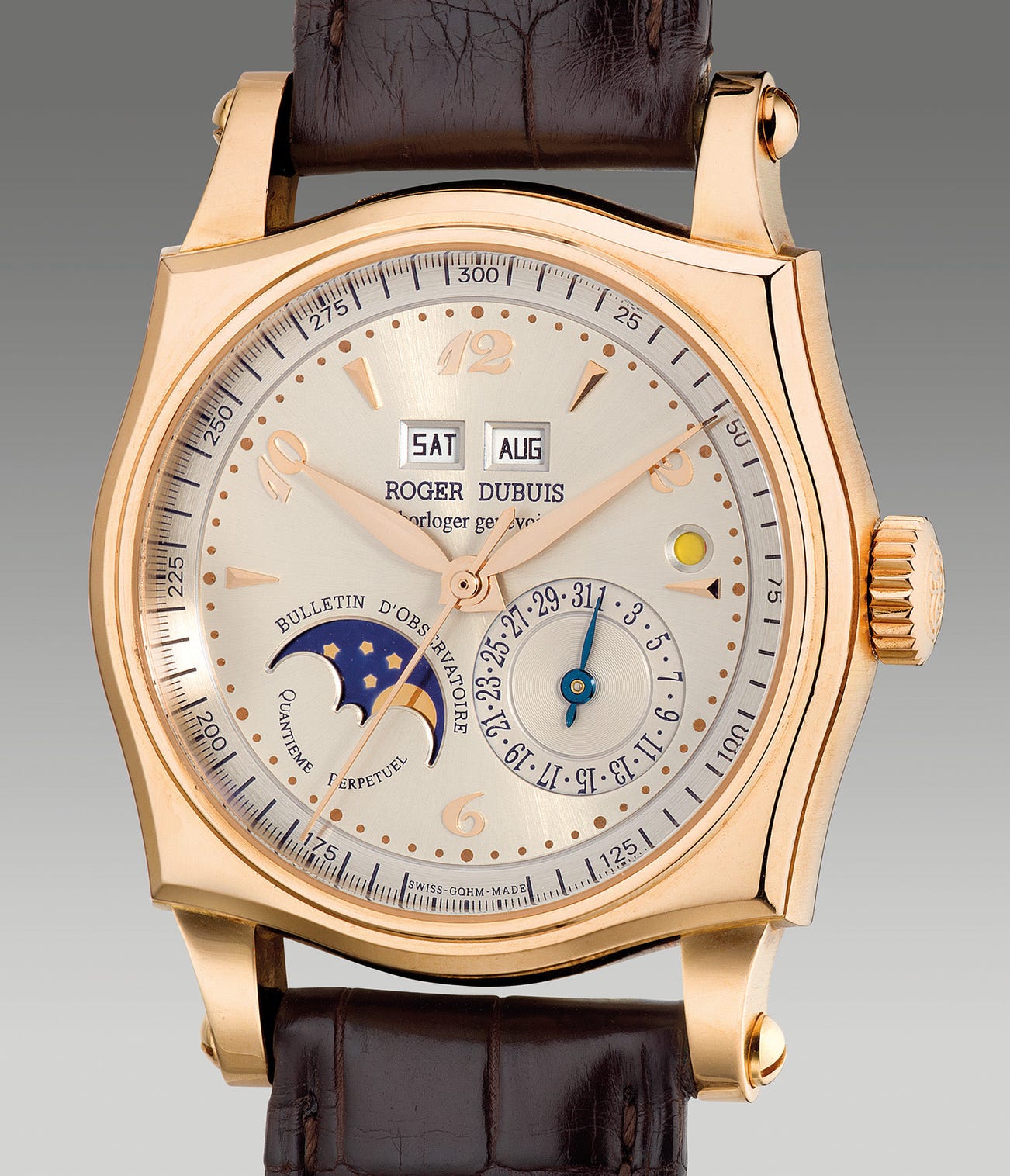 羅杰杜彼,「Sympathie Quantieme Perpetual」型號S37 5739 5,精細罕有,限量版18K玫瑰金萬年曆腕錶,備寶璣數字時標、閏年、月相顯示,限量發行28枚,編號3號,約2000年製。附錶盒、原裝證書