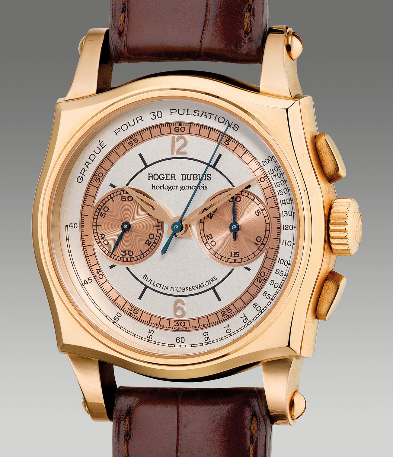 羅杰杜彼,「Sympathie Bulletin d’Observatoire」型號,精細罕有,18K玫瑰金計時腕錶,備「Pulsations」錶盤,約1990年代製
