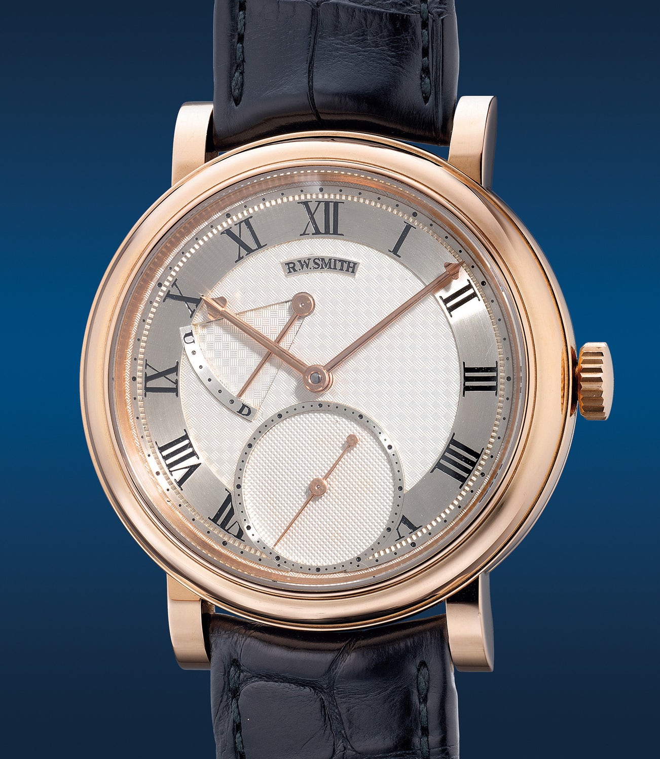 Roger Smith,「Series 2」型號,極度罕有重要,玫瑰金小三針腕錶,備璣鏤錶盤、「Co-Axial」同軸擒縱機芯、動力儲存顯示,2011年製。附錶盒、原裝證書