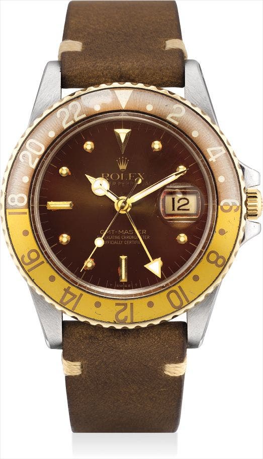 勞力士,18K黃金及不銹鋼腕自動上弦錶,配兩地時間、中心秒針及日曆顯示,“GMT-Master”,型號16753,約1981年製