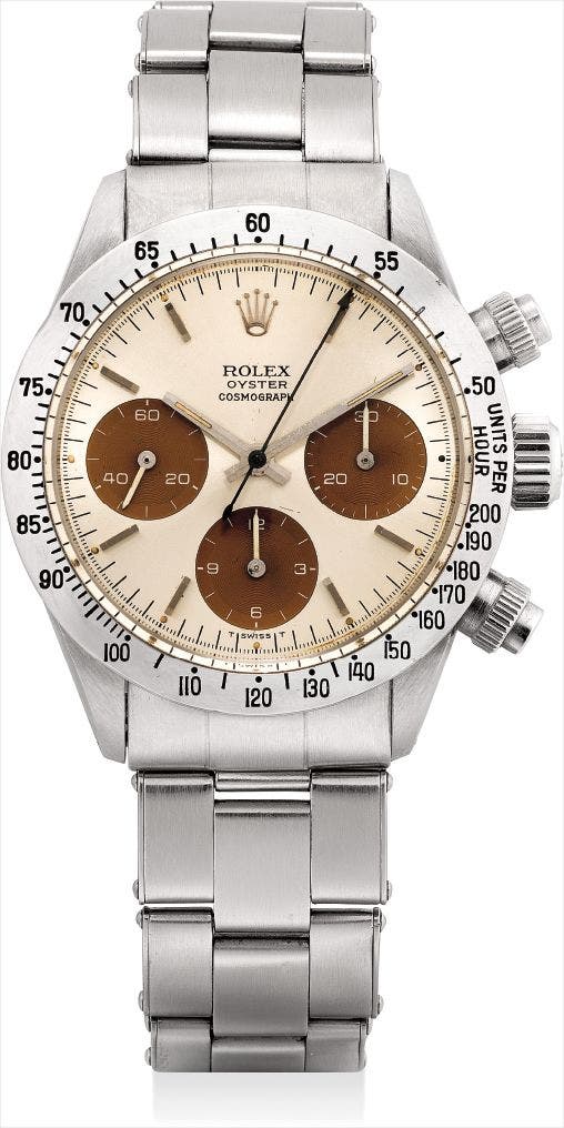 勞力士,精細及非常罕有,不銹鋼鏈帶腕錶,配計時功能及棕色子盤,“Cosmograph Daytona”,型號6265,約1971年製