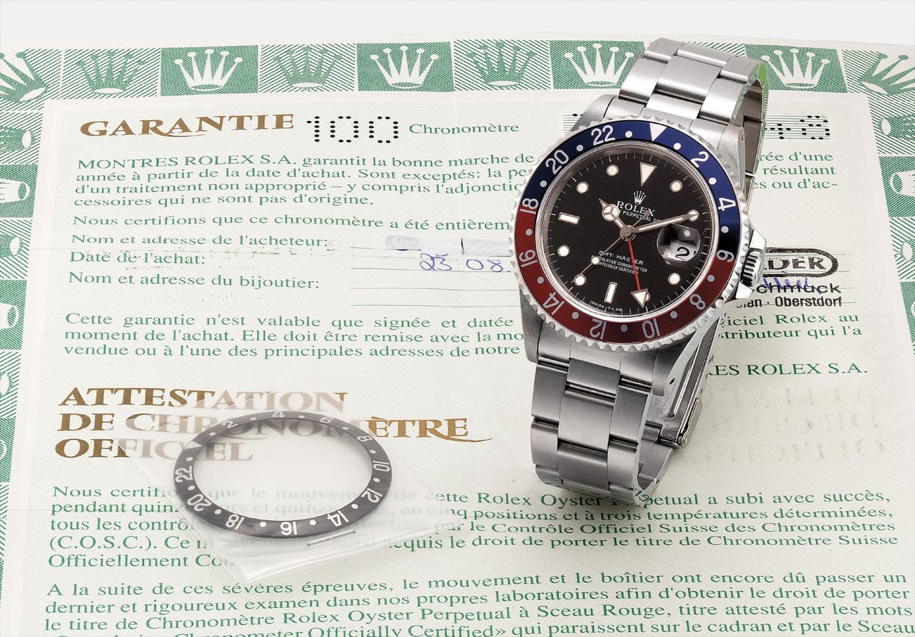勞力士,不銹鋼自動上弦鏈帶腕錶,配兩地時間、中心秒針及日曆顯示,“GMT-Master”,型號16700,附證書及錶圈,約1996年製