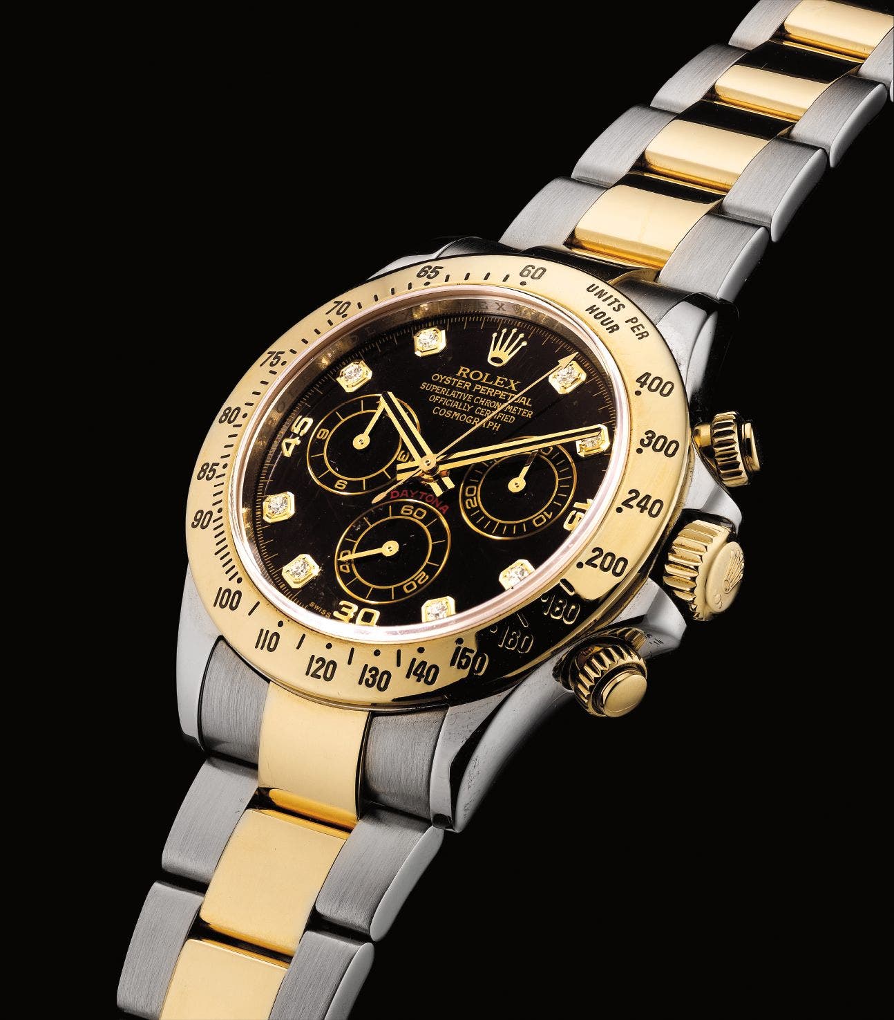 勞力士,精細及罕有,18K黃金及不銹鋼鑲鑽石,自動上弦鏈帶腕錶,配計時功能,“Cosmograph Daytona”,型號116523,約2012年製