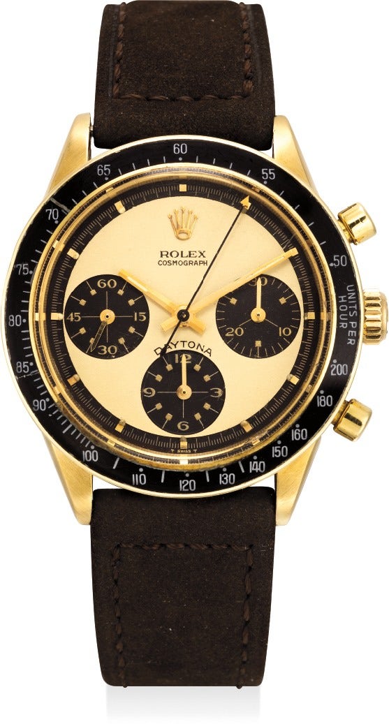 勞力士,「Cosmograph Daytona」型號6241,重要及非常罕有,14K黃金腕錶,配計時功能及「Paul Newman」錶盤,約1969年製