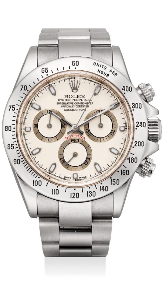 勞力士,「Cosmograph Daytona」型號116520,精細及十分罕有,精鋼自動上弦鏈帶腕錶,配計時功能,約2000年製。附錶盒和保證書。來源:亞洲重要私人收藏