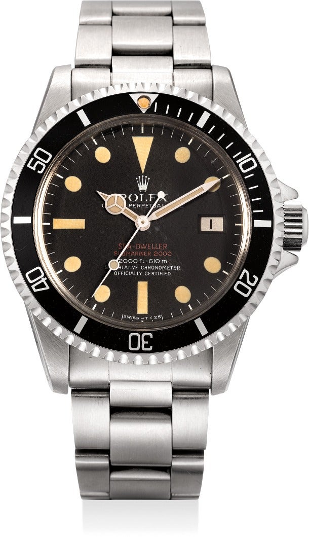 勞力士,「Sea-Dweller」型號1665 ,精鋼自動上弦鏈帶腕錶,配罕有雙紅「Double Red」錶盤,約1974年製