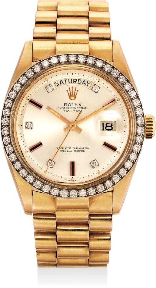 勞力士,「Day-Date」型號1804,精細及罕有,18K玫瑰金鑲鑽自動上弦鏈帶腕錶,約1969年製