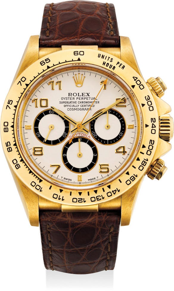 勞力士,「Cosmograph Daytona」型號16518,18K黃金自動上弦腕錶,配計時功能,約1991年製