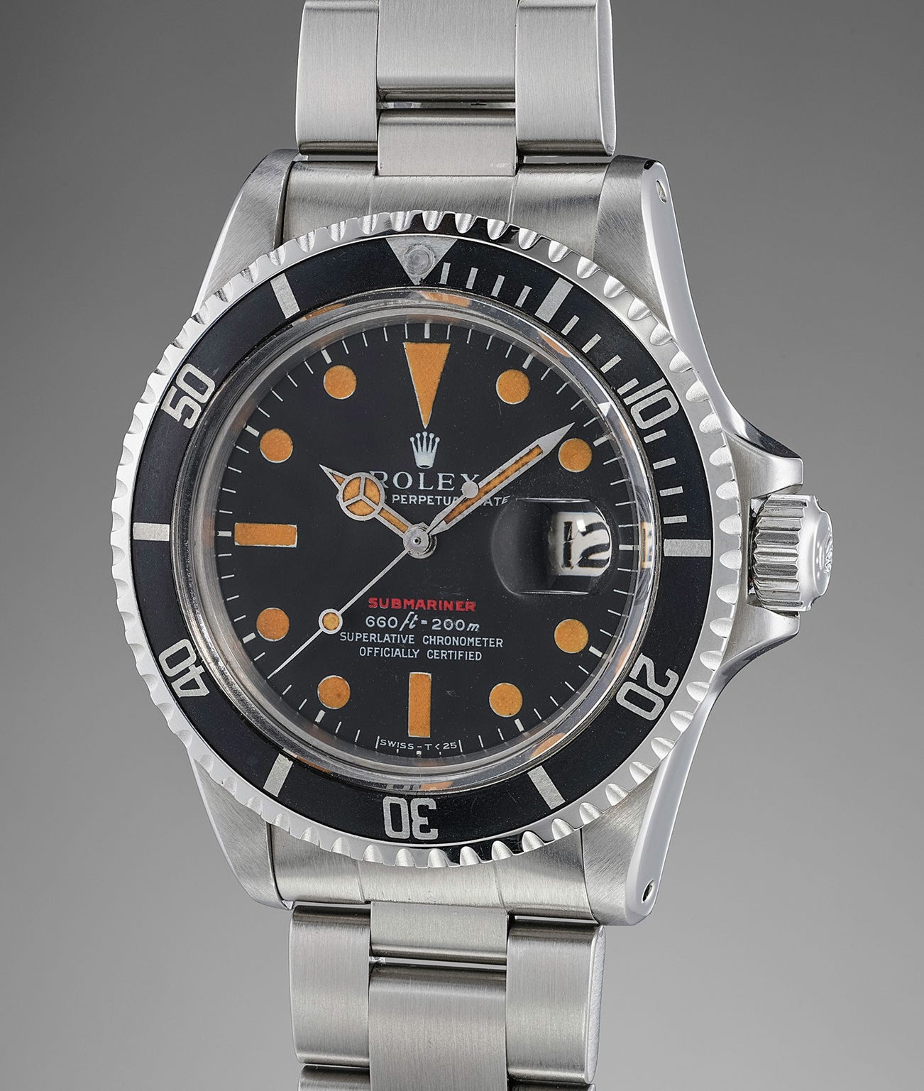 Offered with its original guarantee and two service cards, the present watch most notably displays a dial with "pumpkin" patina. Over time, the luminous material on the hands and numerals have aged from white to an arresting and intense orange tone that is particularly beloved and cherished by collectors.