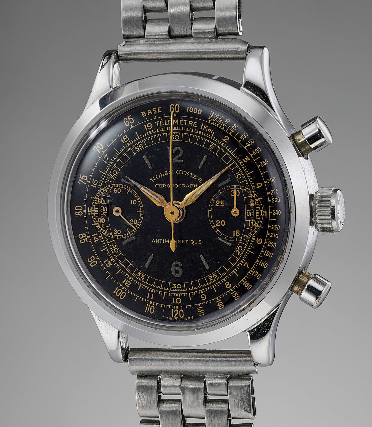 Combining historical interest, enthralling aesthetics and superior condition, the present wristwatch is without a doubt a fascinating and highly collectible piece of Rolex history.