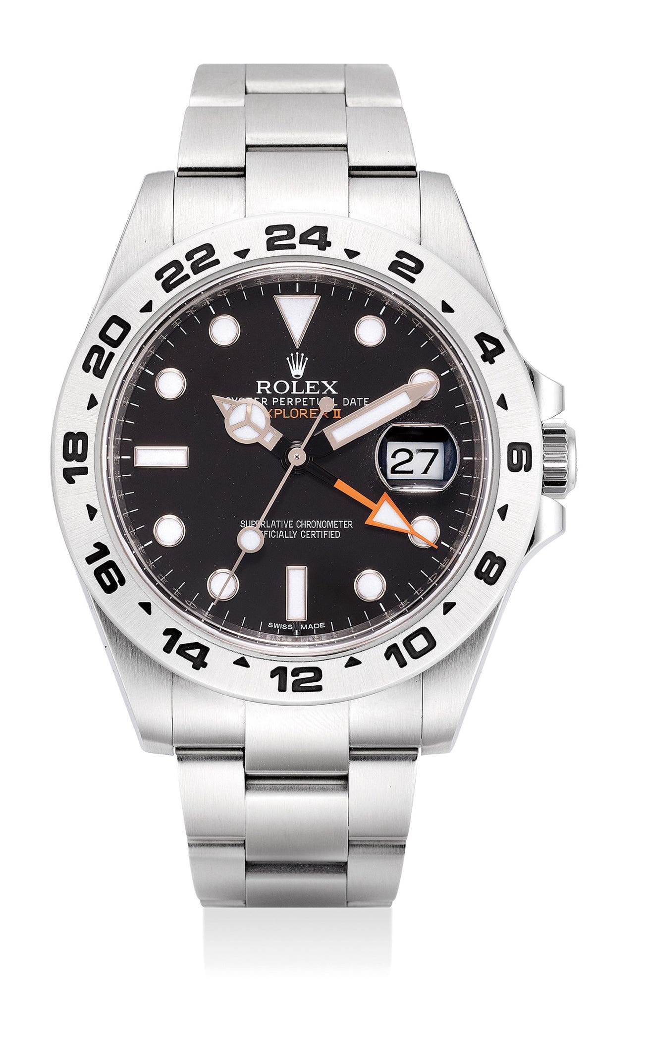 勞力士,「Explorer II」型號216570,罕有,精鋼自動上弦鏈帶腕錶,配24小時顯示、中心秒針和日期顯示,約2010年製。附保證書和錶盒