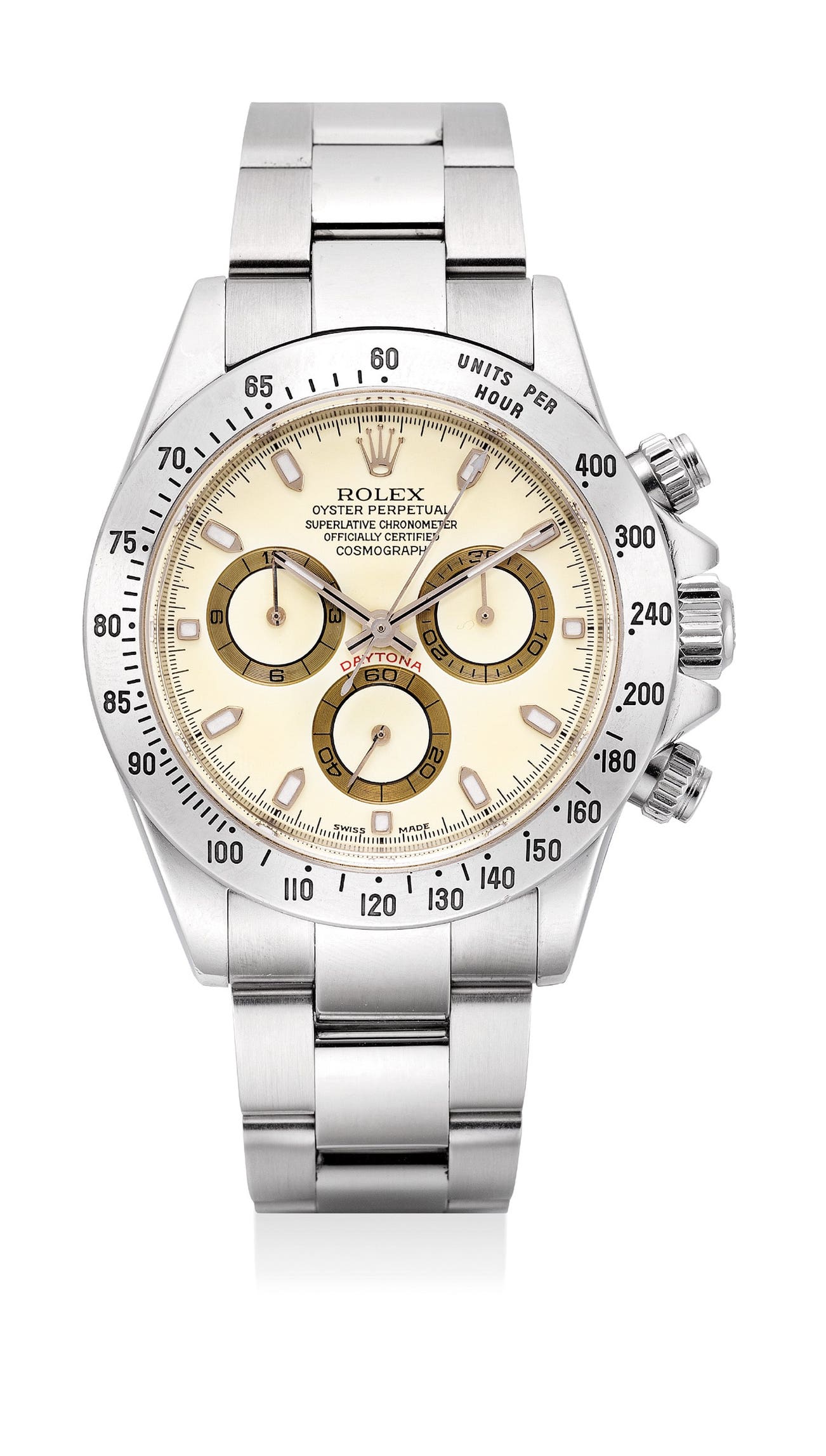 勞力士,「Cosmograph Daytona」型號116520,十分精細及罕有,精鋼自動上弦腕錶,配計時功能和「Cream dial」錶盤,2002年製。附勞力士錶盒、保證書