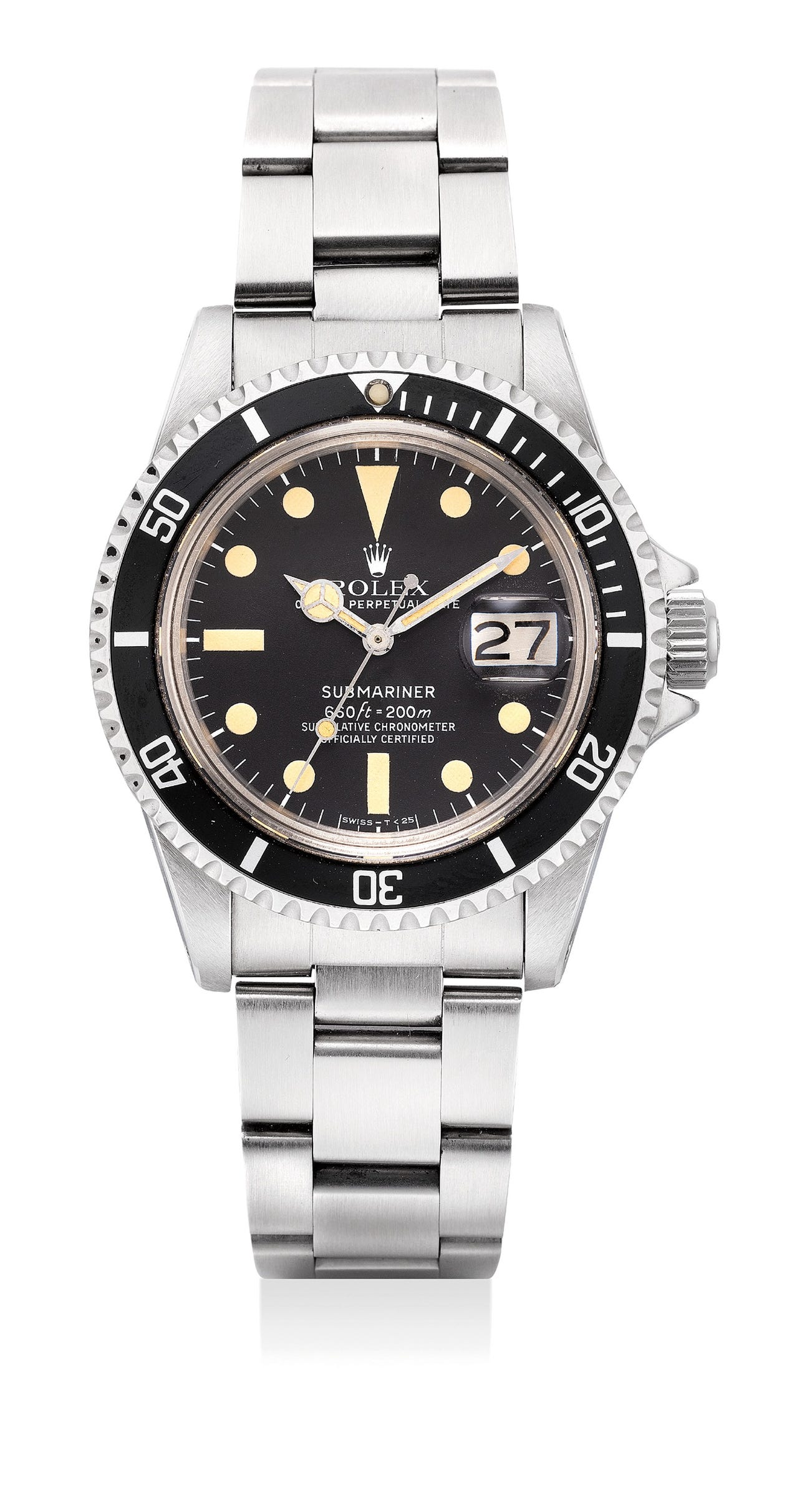 勞力士,「Submariner」型號1680,精細,精鋼自動上弦鏈帶腕錶,配中心秒針和日期顯示,約1978年製。附錶盒、保證書、配件