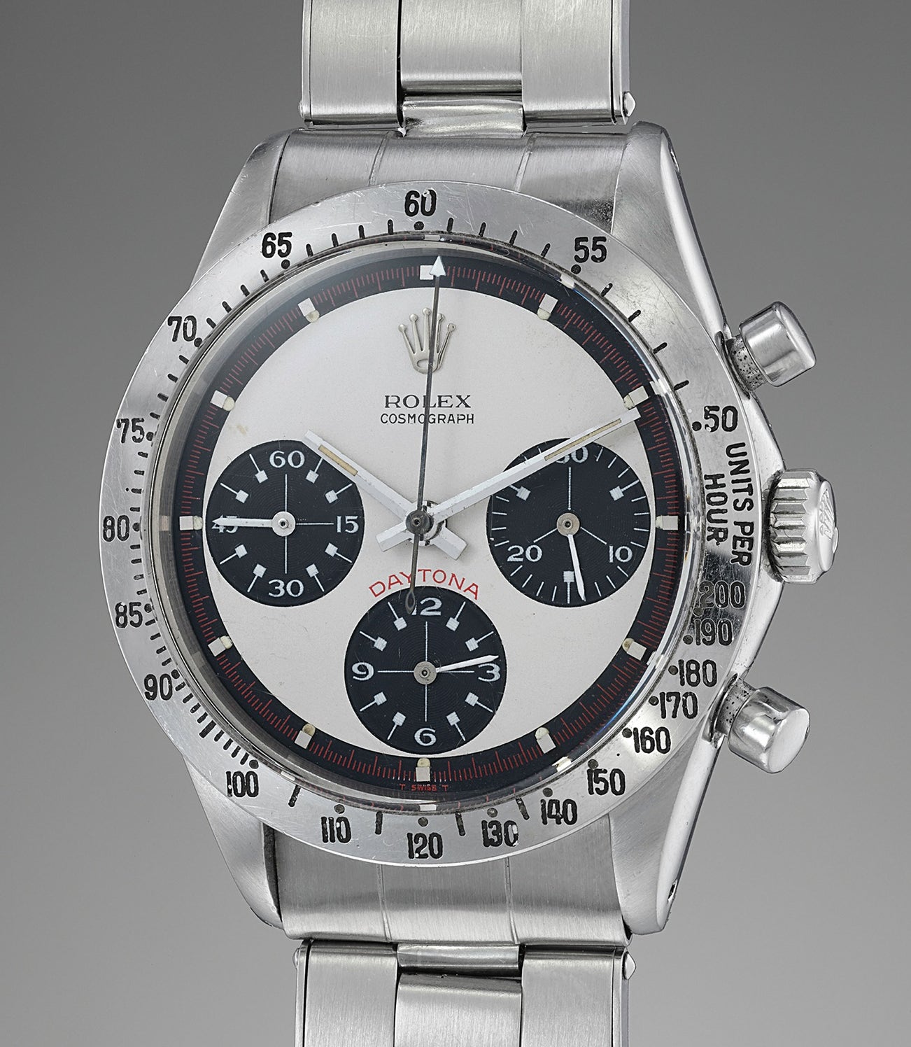 Reference 6239 was introduced in 1963, which was a breakthrough year for Rolex. Named the "Cosmograph”, the model featured for the very first time a tachymeter scale on the bezel. While originally announced as the "Le Mans" it was eventually called "Daytona”.