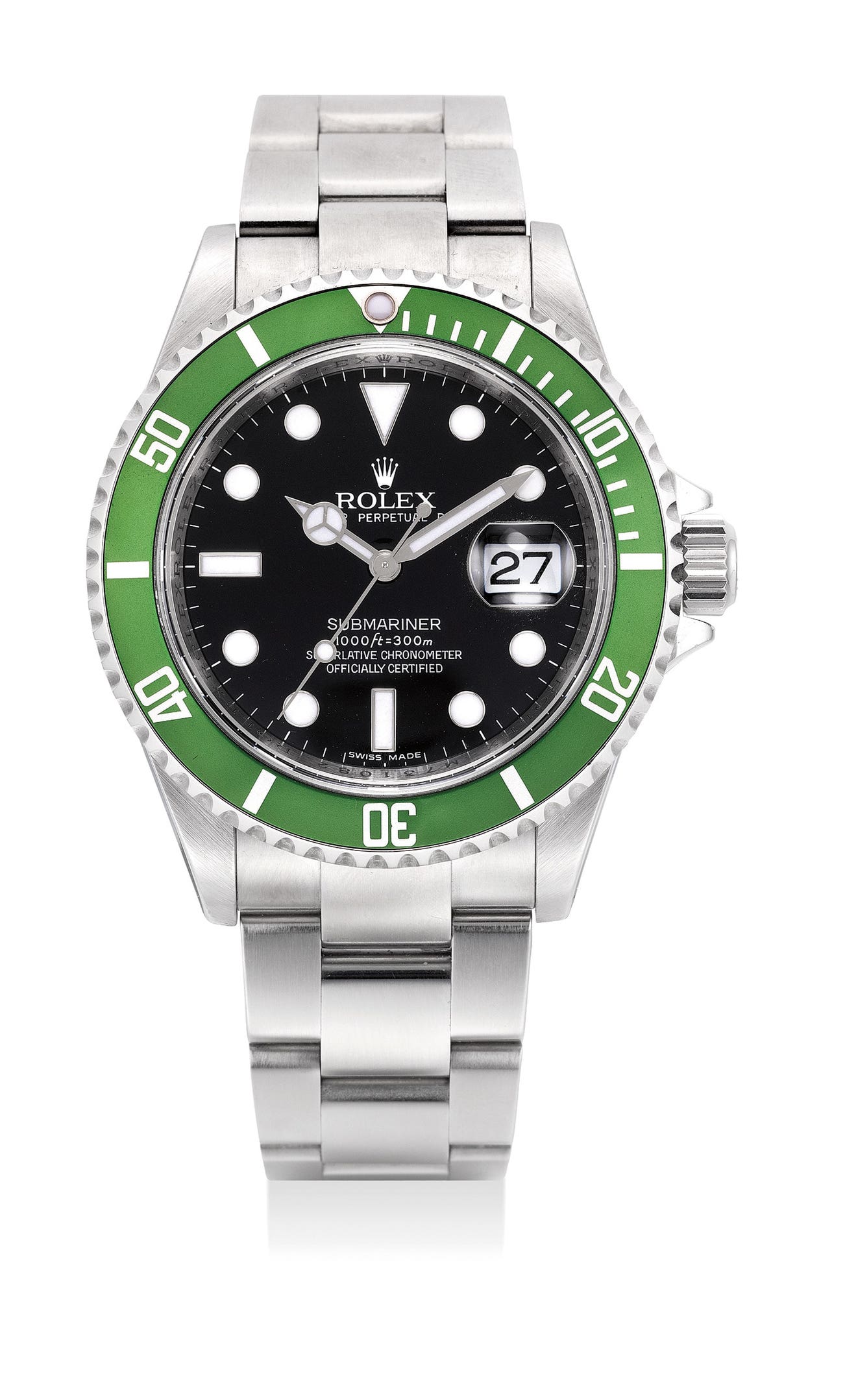 勞力士,「Submariner」型號16610V,精鋼自動上弦鏈帶腕錶,2007年製。附原裝錶盒、保證卡和配件