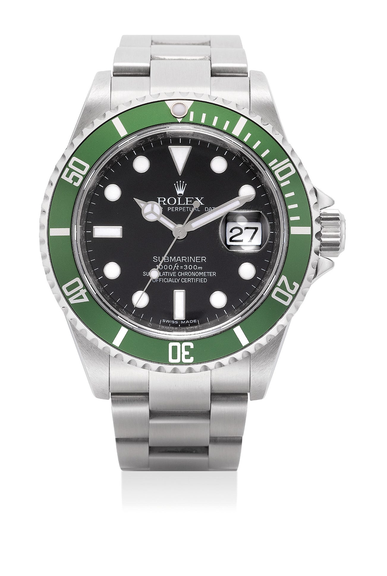 勞力士,「Submariner Kermit」型號16610V,精鋼自動上弦鏈帶腕錶,2007年製。附保證書