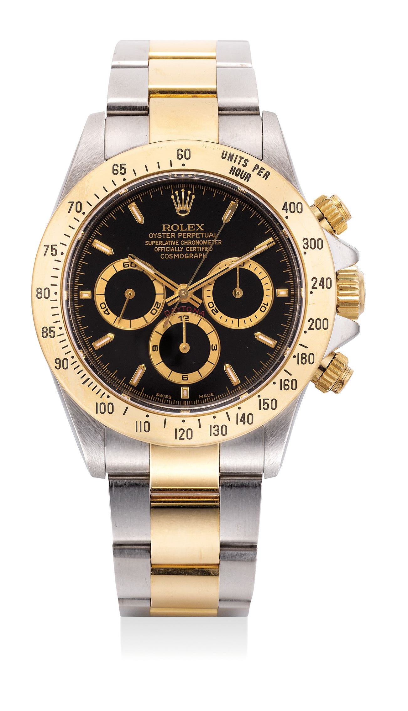 勞力士,「Cosmograph Daytona」型號16523,精細,18K黃金和精鋼自動上弦鏈帶腕錶,1999年製。附錶盒、保證書、配件