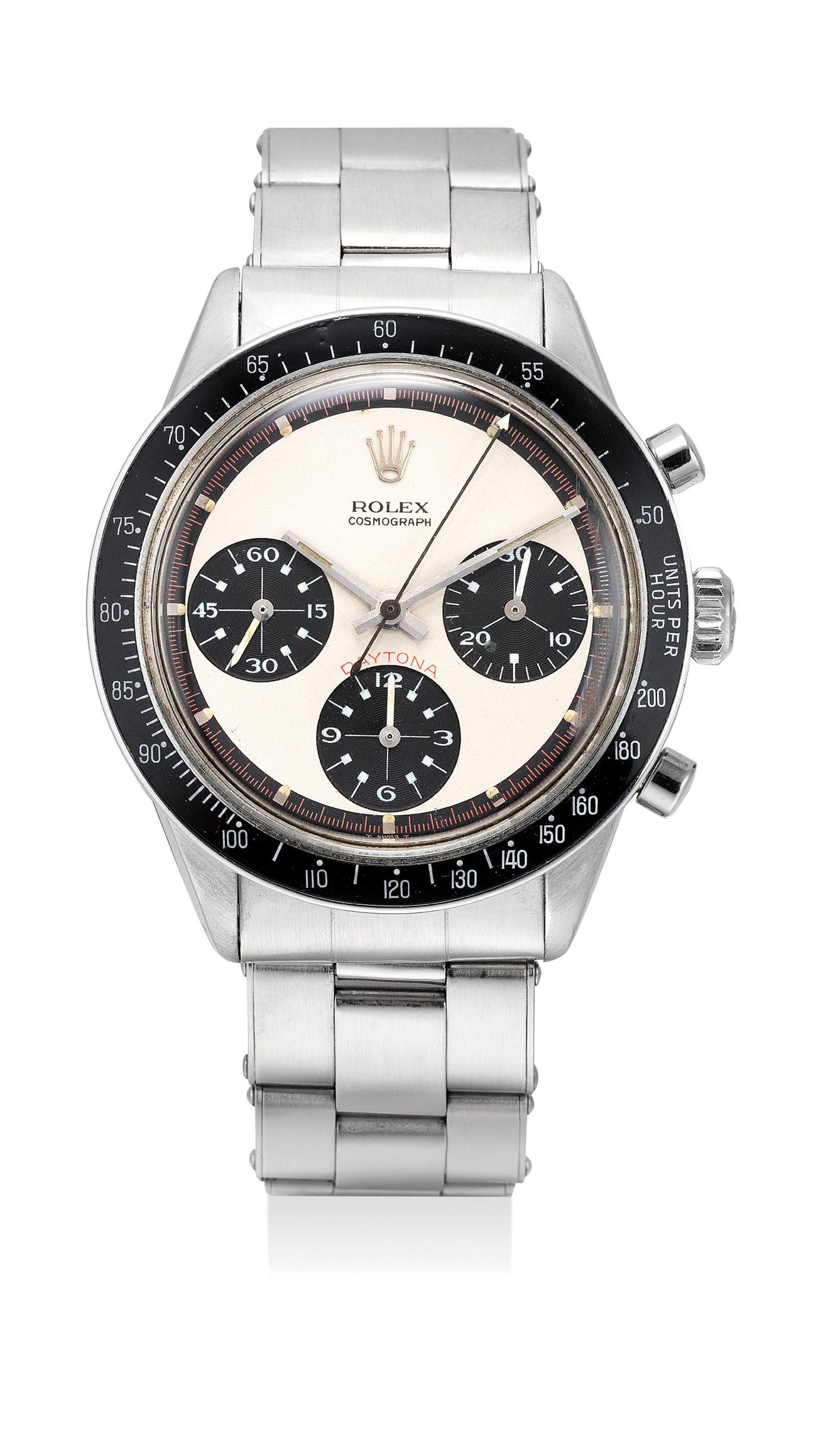 勞力士,「Cosmograph Daytona」型號6241,精細及非常罕有,精鋼鏈帶腕錶,配計時功能和「Paul Newman」錶盤,約1968年製