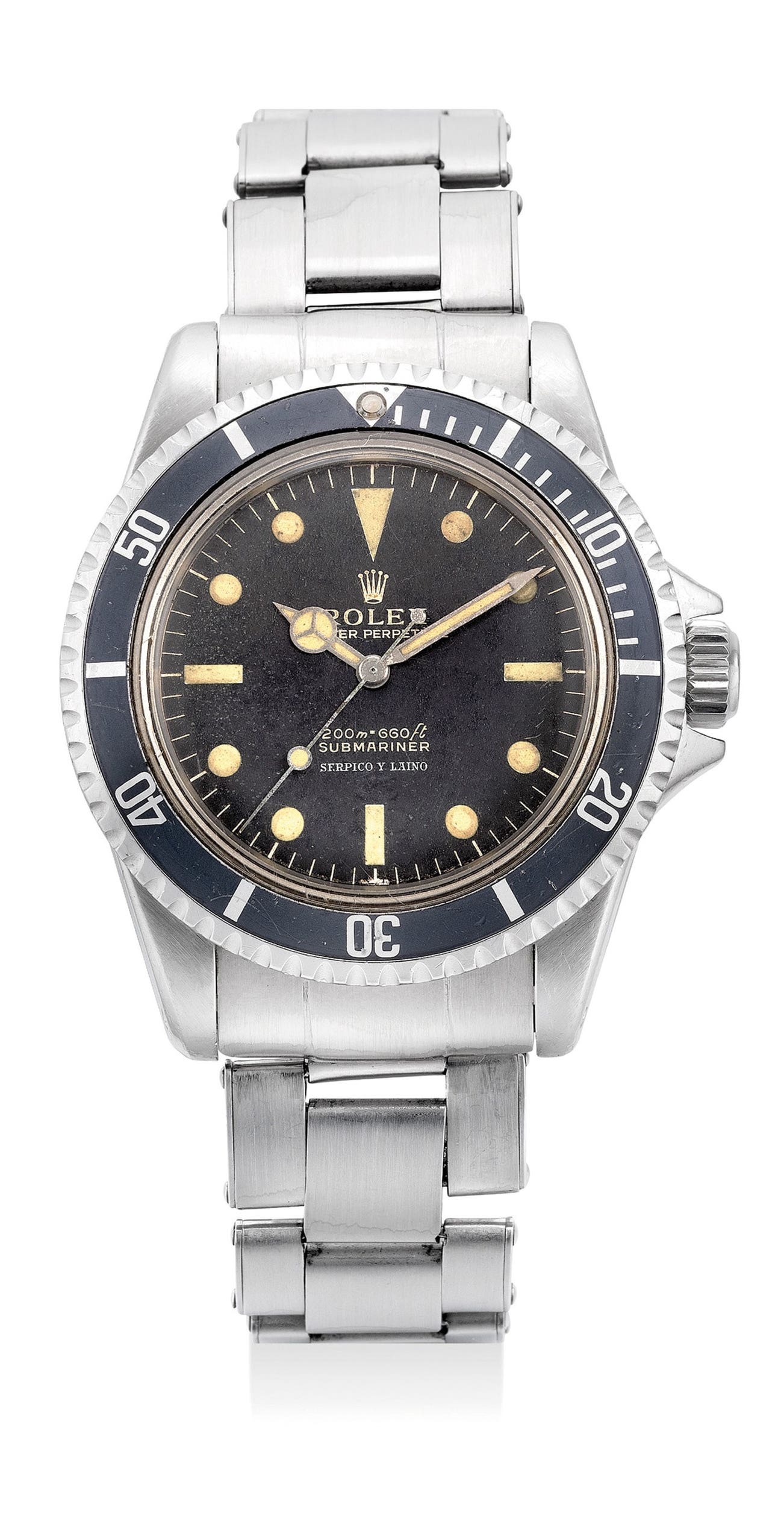 勞力士,「Submariner」型號5513,精細及非常罕有,精鋼自動上弦鏈帶腕錶,由Serpico Y Laino銷售,約1963年製