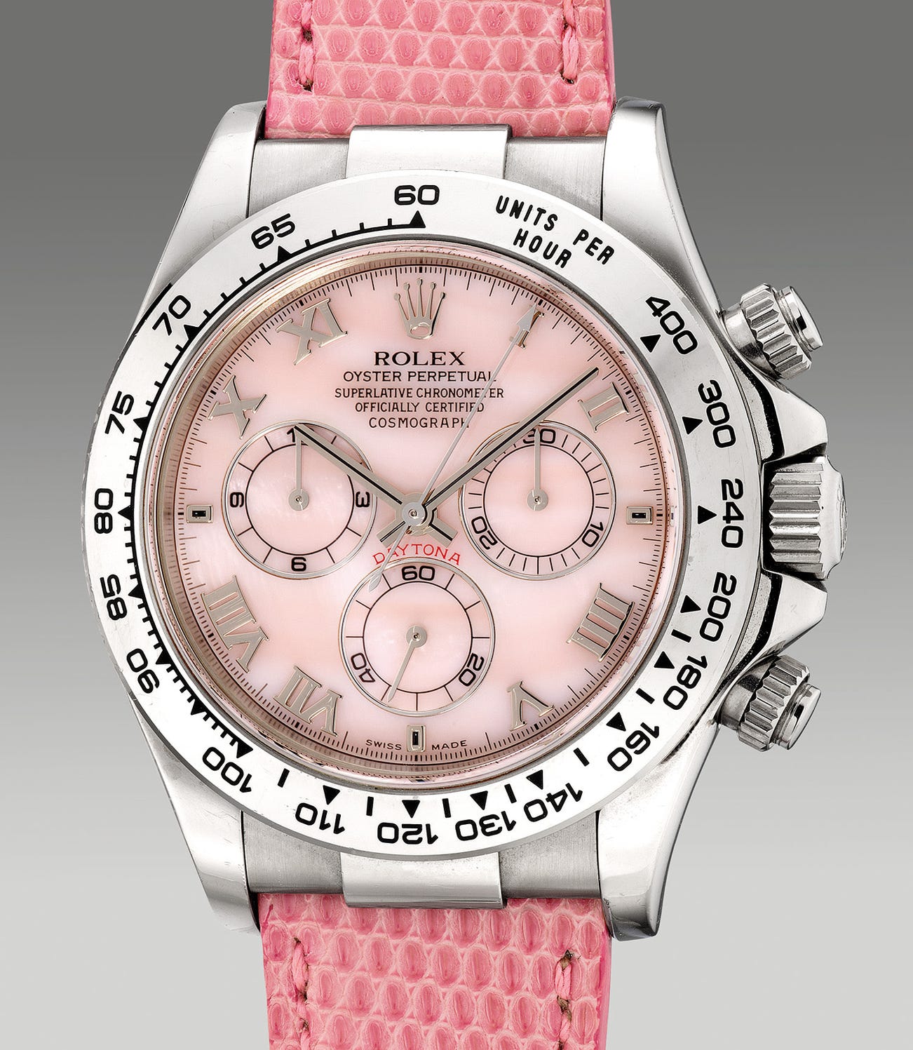 勞力士,「Cosmograph Daytona, Pink Beach」型號116519,精細罕有,18K白金自動計時腕錶,備天然粉色珠母貝錶盤,約2000年製。附原裝證書、錶盒、配件