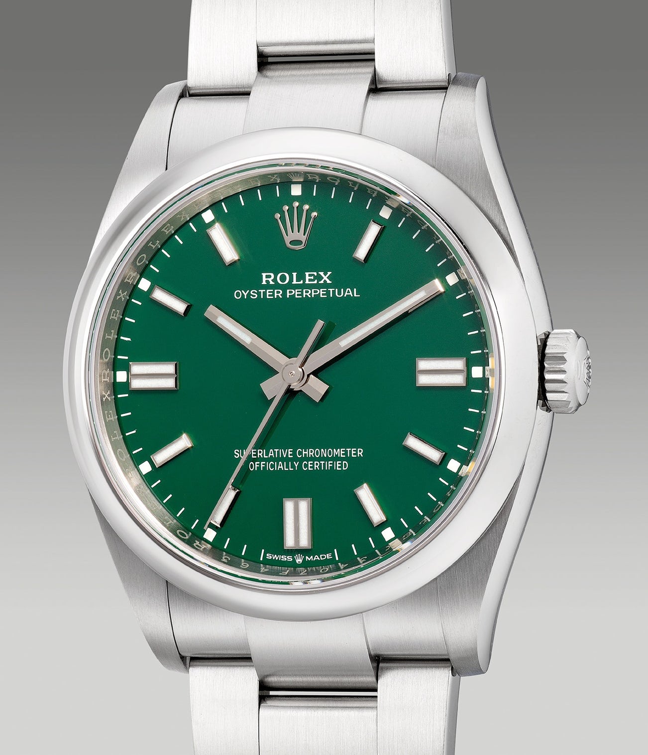 勞力士,「Oyster Perpetual 36」型號126000,精細,精鋼自動鏈帶腕錶,備綠色漆面錶盤,約2020年製。附原裝證書、錶盒