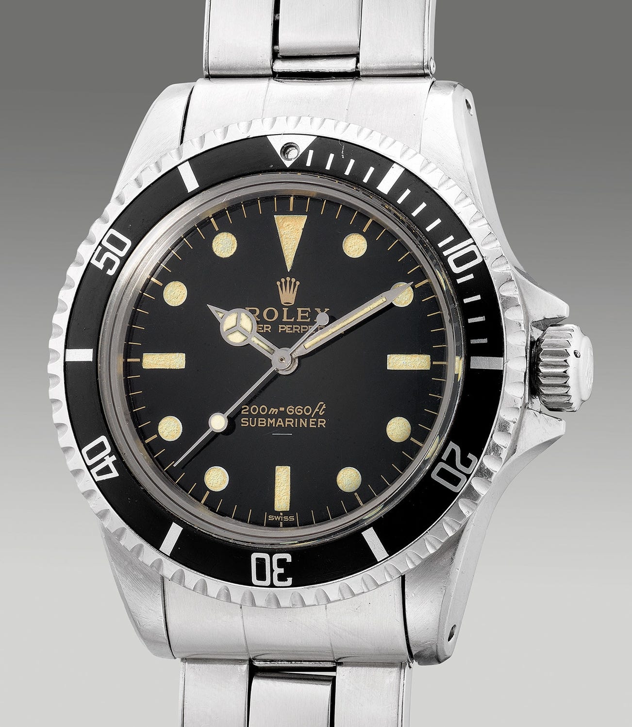 勞力士,「Submariner」型號5513,非常精細罕有,精鋼自動鏈帶腕錶,備「Swiss underline」黑色亮面錶盤、尖形錶冠護橋、中心秒針,約1963年製
