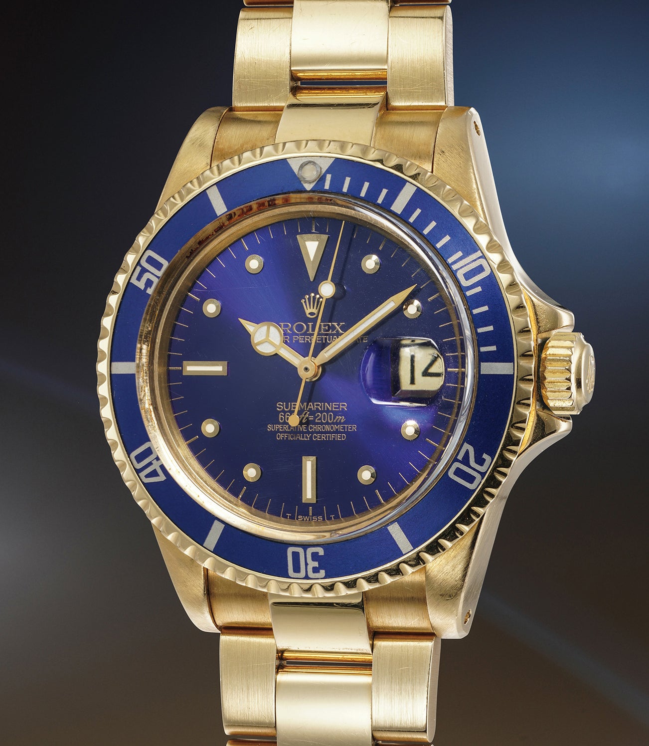 The present watch, offered in extremely crisp condition is very impressive. All hallmarks beneath the lugs are sharp and visible, and even the bevels on the edge remain sharp. Most stunningly, the center of the dial looks slightly violet under certain light conditions, meaning that it is starting the "tropical" process.