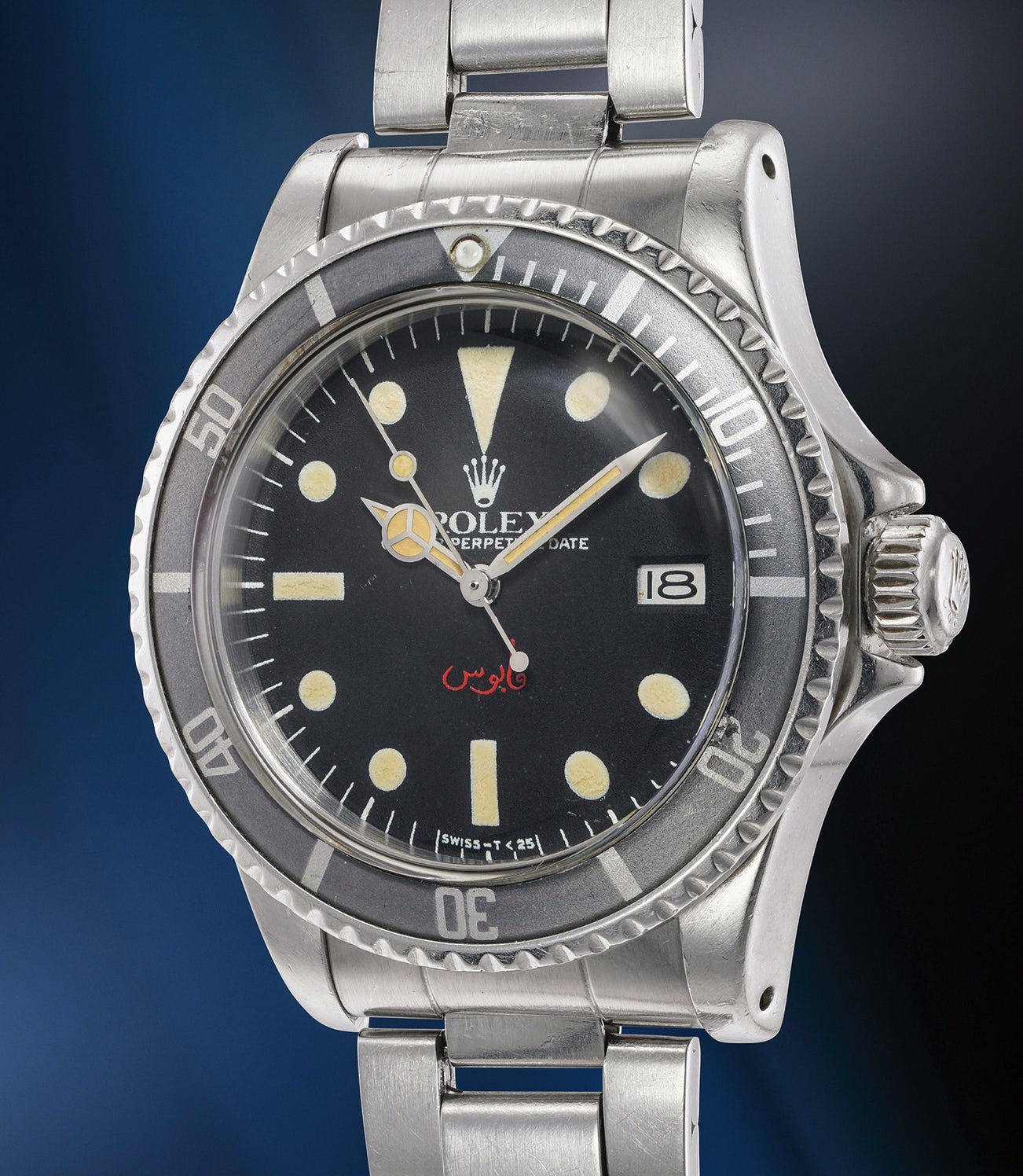 勞力士,極為罕有,精鋼鏈帶腕錶,備「Qaboos」錶盤、日期顯示、排氦裝置, 特為阿曼蘇丹國製造。