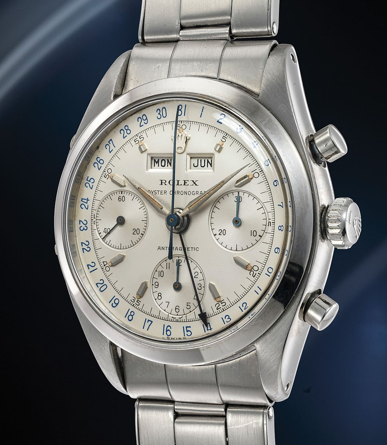 With the discontinuation of this latest model, Rolex puts an end to its most complicated (vintage) line of chronograph timepieces. A similar level of complication is approached only by references 8171 and 6062, combining triple calendar with moonphases.